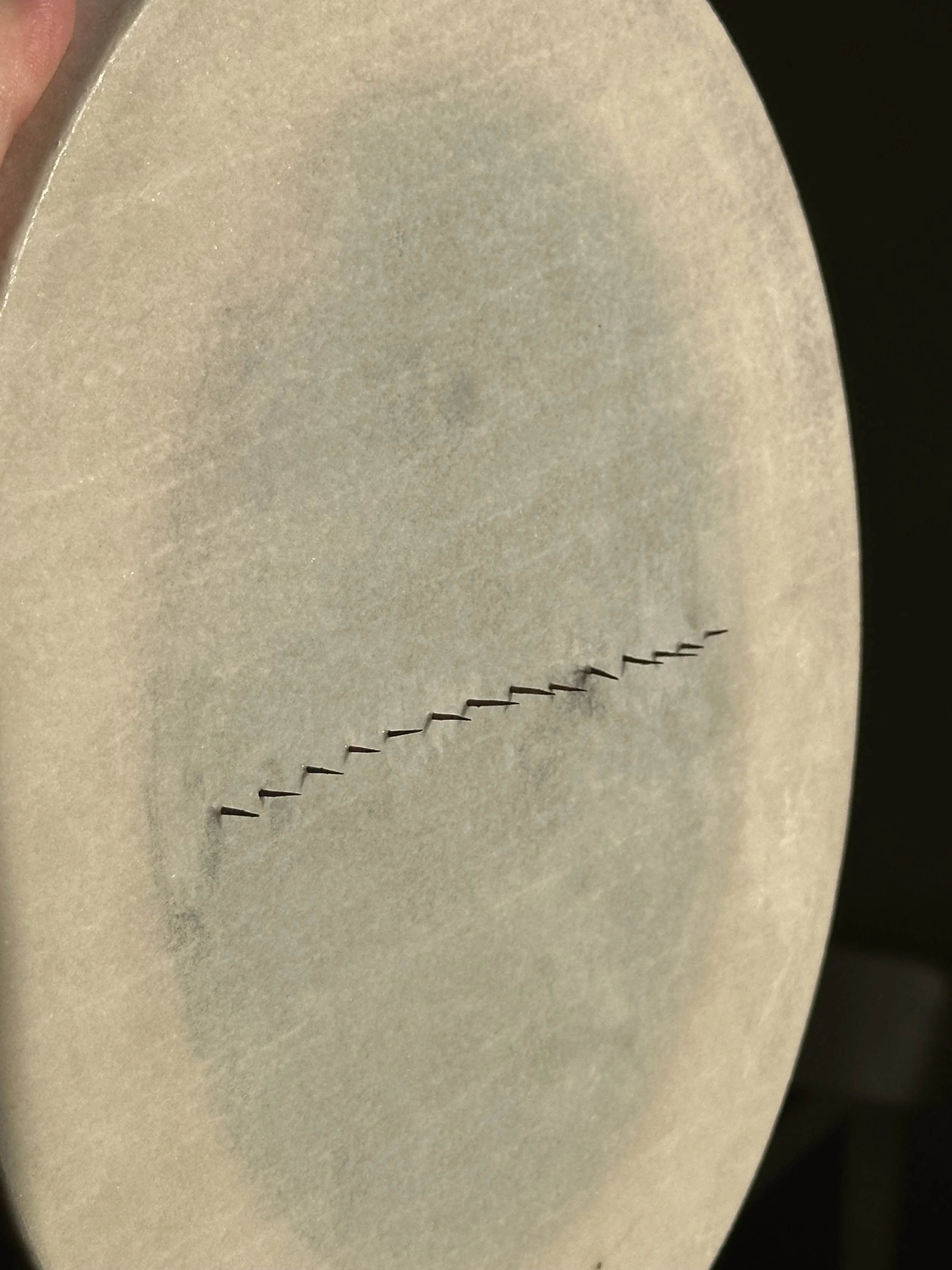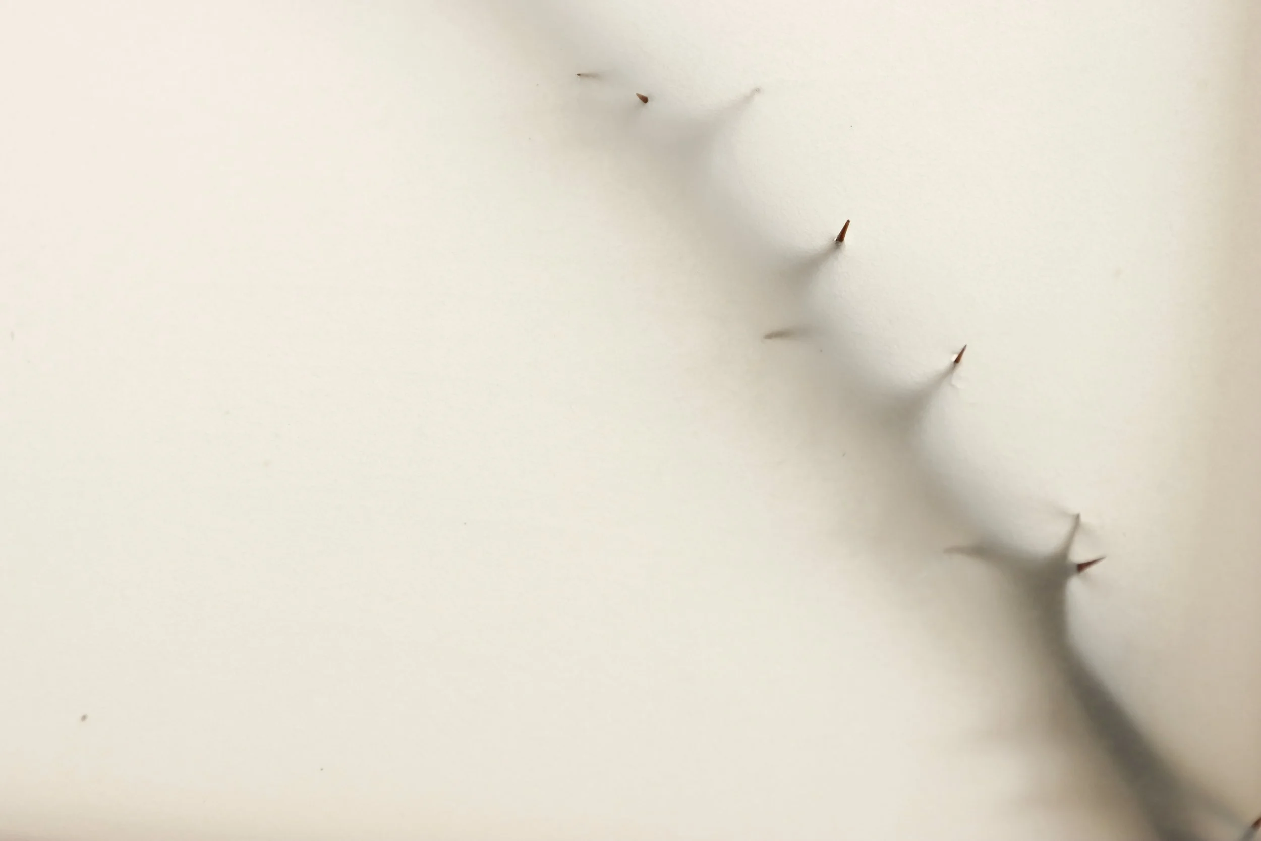By embedding real thorns into latex, a material chosen for its skin-like vulnerability, I explore the fragile boundary between human morality and the transformation from innocence to torment.